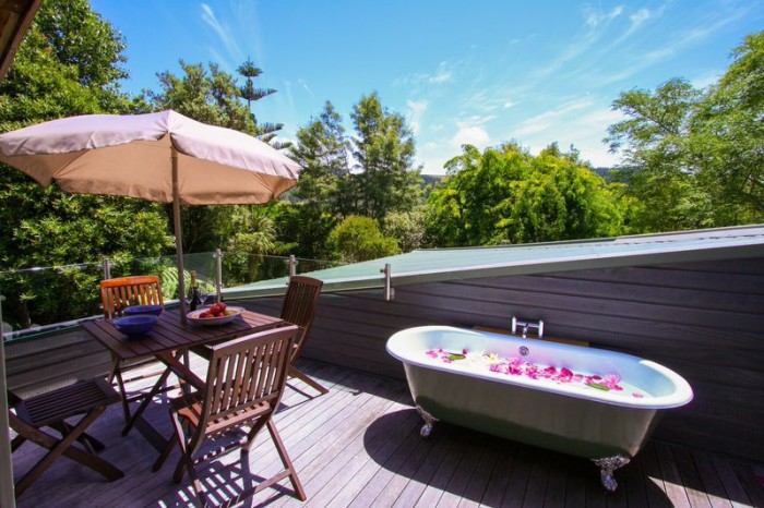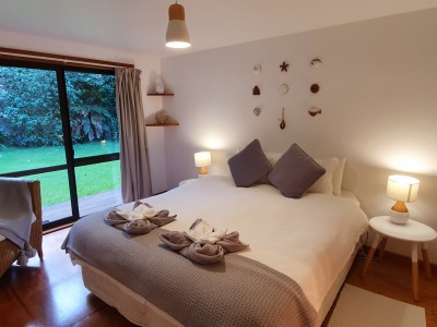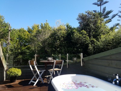 In a peaceful setting, just a moment’s walk through the gardens to the river, River Cottage is the perfect getaway for winter and summer with cosy wood fire and romantic alfresco claw-foot bath on your private north facing sun-deck. Unwind to the soundtrack of native birdlife or help yourself to a kayak from the boatshed and head down the river to the stunning and deserted sandy beaches of Takou Bay.