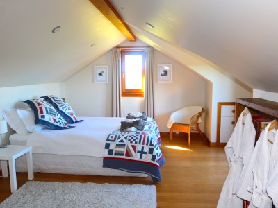 Seven spacious and beautiful bedrooms provide relaxing havens for up to 12 guests. The five modern bathrooms feature original mosaics, walk in showers and luxurious free-standing baths taking in the panoramic coastal views. The master bedroom features a super-king bed and private north facing upper sun deck with amazing sea views. The master en suite has a huge double walk in shower, beautiful cast iron bath with stunning sea views, and twin sinks. Three further king bedrooms are located on the ground floor. Each spacious bedroom features beautiful antiques, wonderful views and floor length windows and doors opening onto the north-facing decks. Upstairs a further king bedroom and two further single bedrooms are tucked under the eaves. Perfect for children, the bedrooms offer more ocean outlooks and have their own bathroom with bath and shower